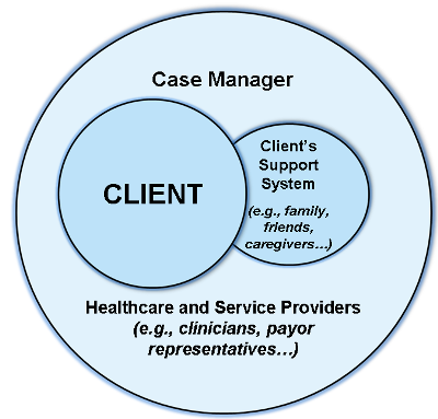 Centering on a client and the client’s support system, the Case Management Process is holistic in its approach to the management of the client’s situation and that of the client’s support system. It is adaptive both to the case manager’s practice setting and to the healthcare setting in which the client receives services.